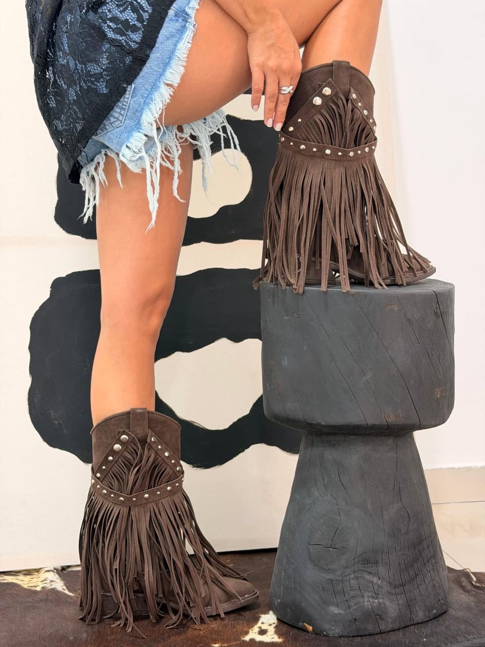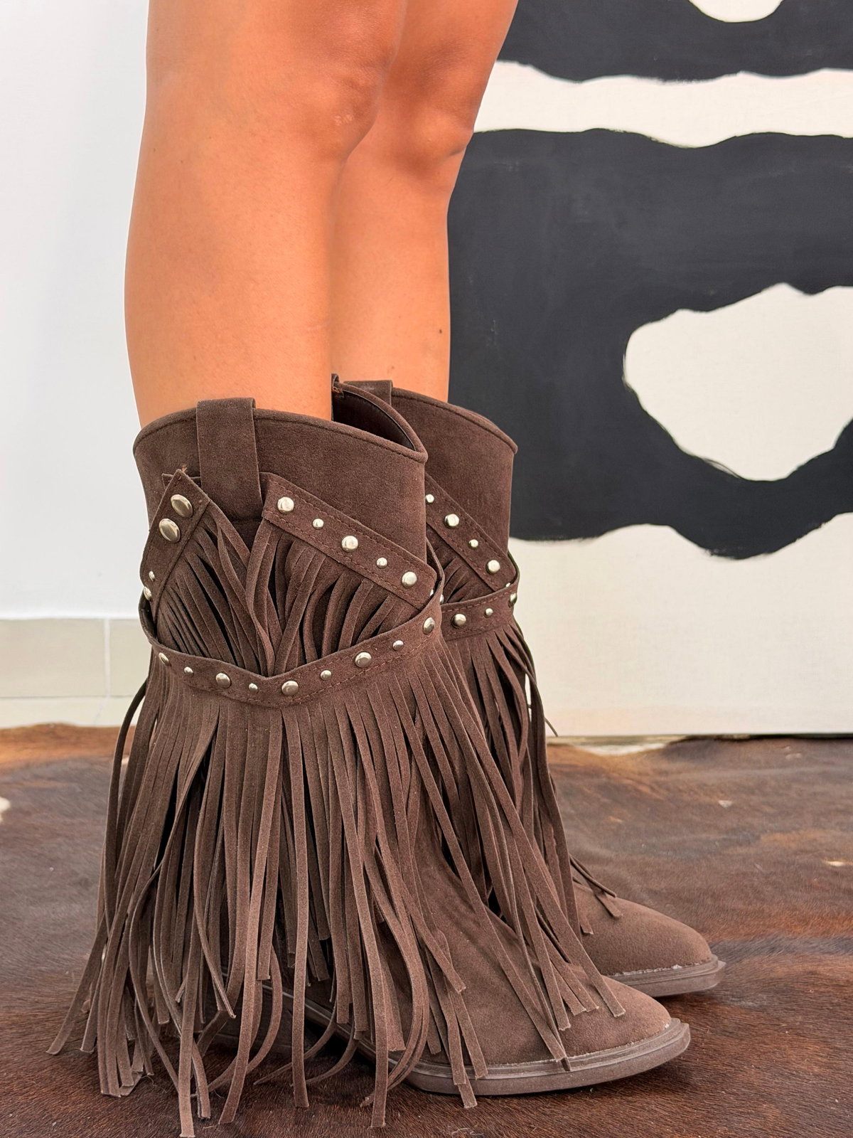 Capellada cuero gamuzado con tachas níquel